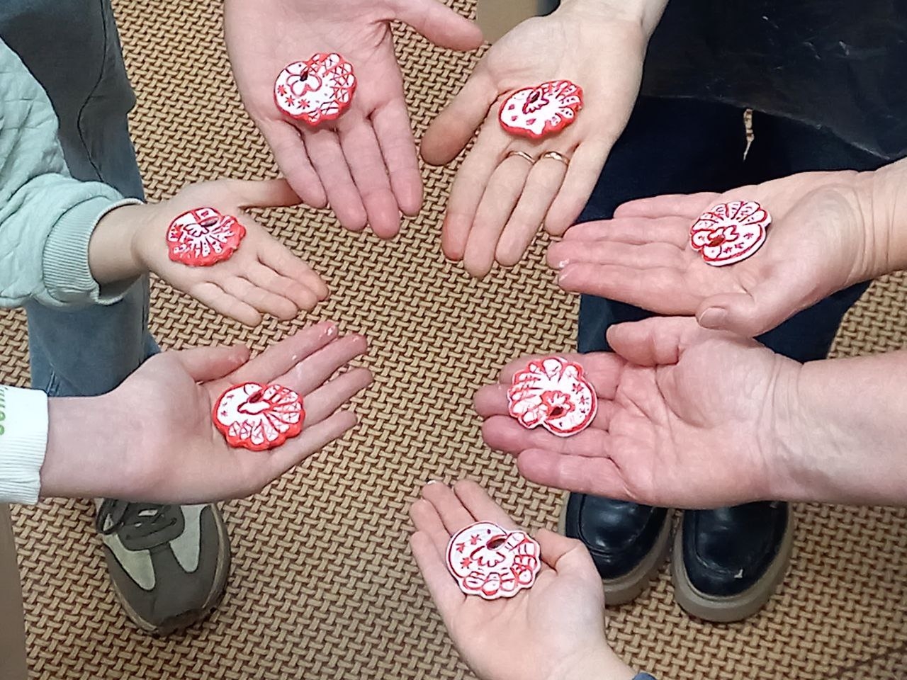 Ольга Белова - начальник информационно-методического отдела Управления культуры, молодежной политики и туризма Сокольского муниципального округа Управление культуры пришла не одна, а с руководителями керамической мастерской Кадниковской детской школы искусств. Людмила Максименкова и Ирина Быкова провели для гостей и участников мастерской мастер-класс по росписи керамической броши, название которого очень символично для Семейной мастерской – «Вологодская птица счастья».