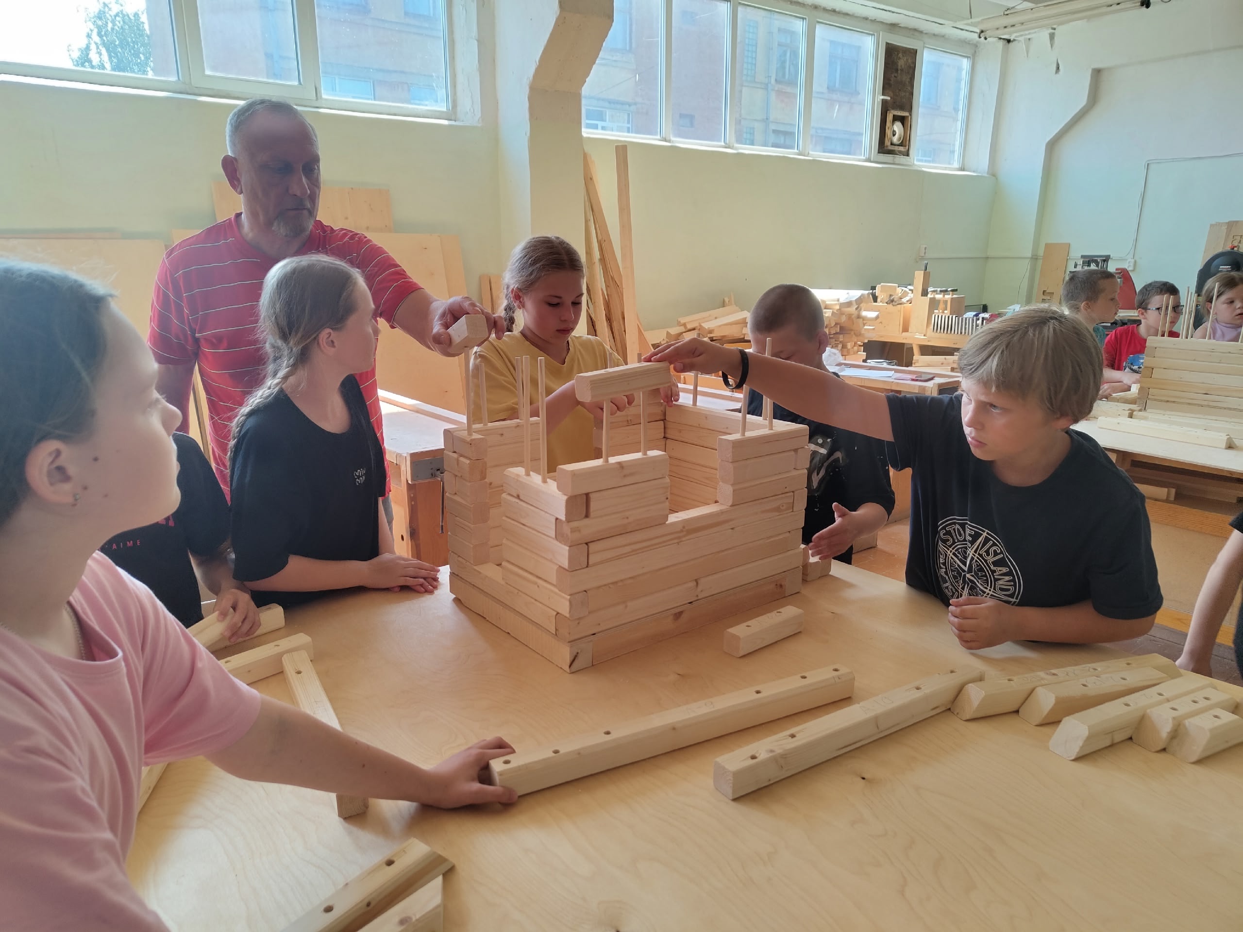 На втором мастер-классе ребята воплощали в жизнь строительный проект. Под руководством наставника им предстояло построить дом из модулей по заранее подготовленному чертежу. Совместными усилиями они создали миниатюру настоящего жилого дома с окнами и крышей.