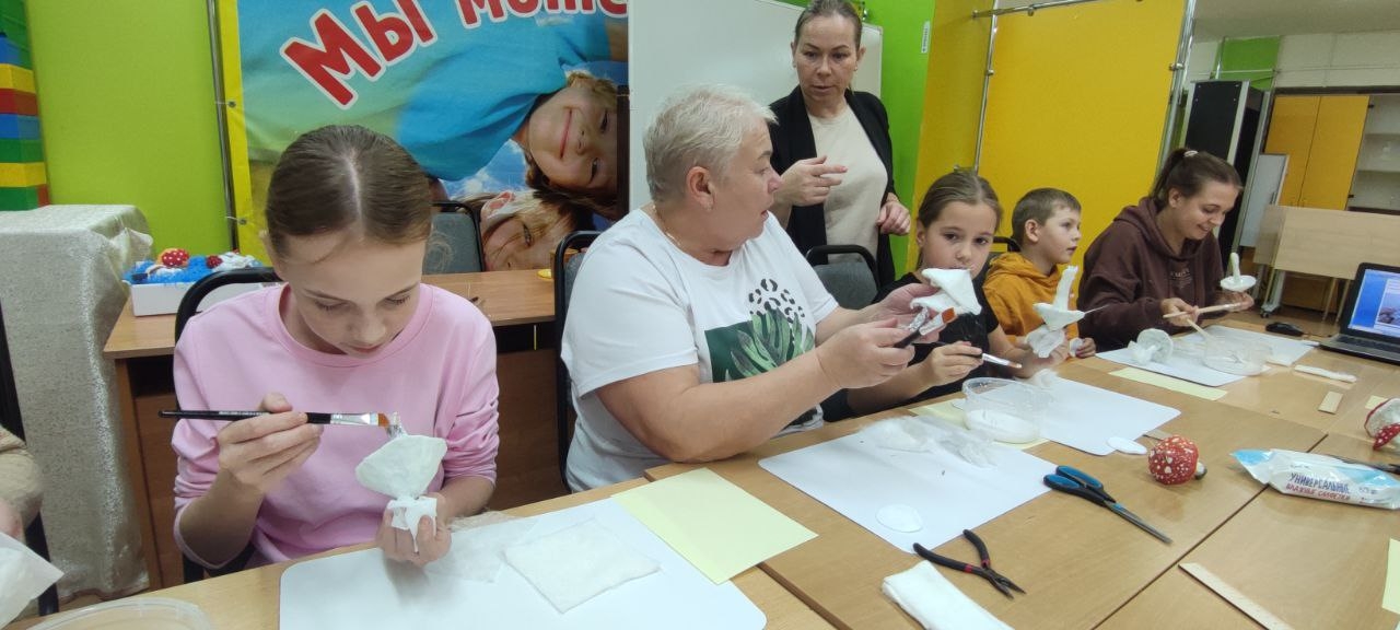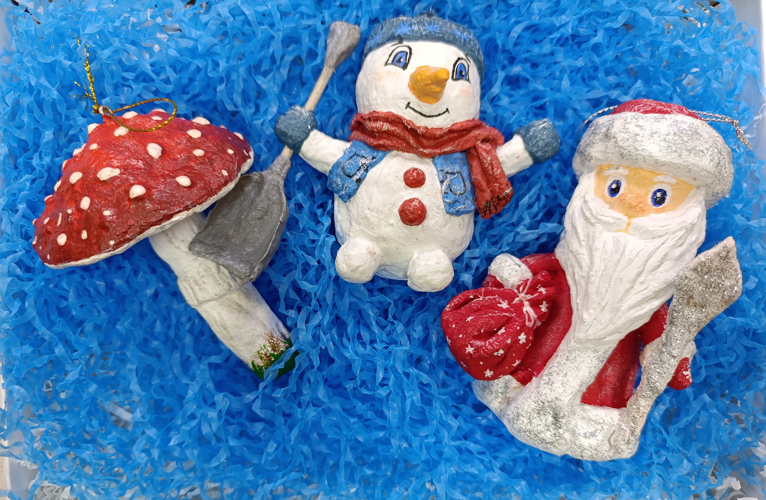 Пока участники мастерской освоили только изготовление красавца Мухомора. Скоро появится снеговик, а, возможно, Дед Мороз или Колобок.